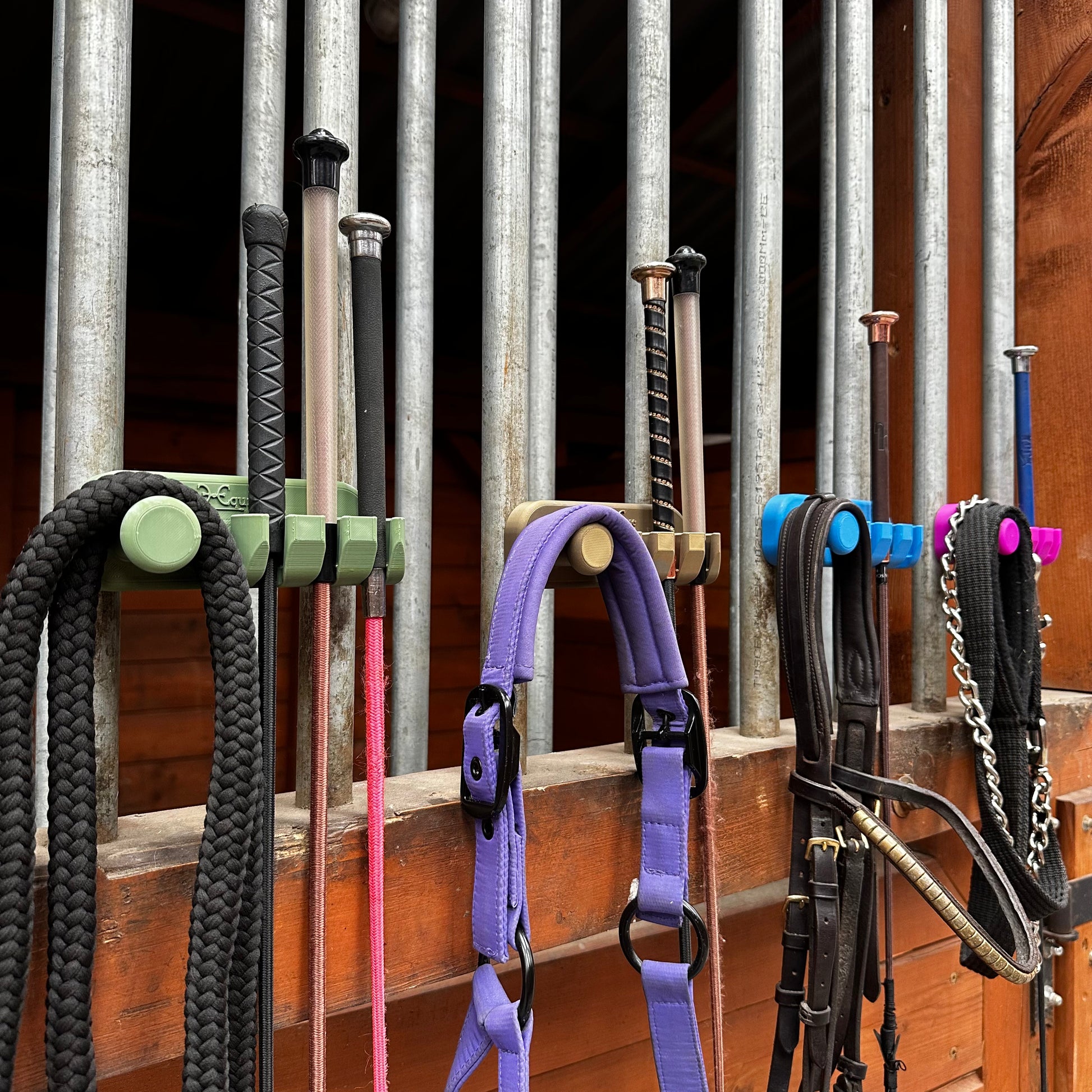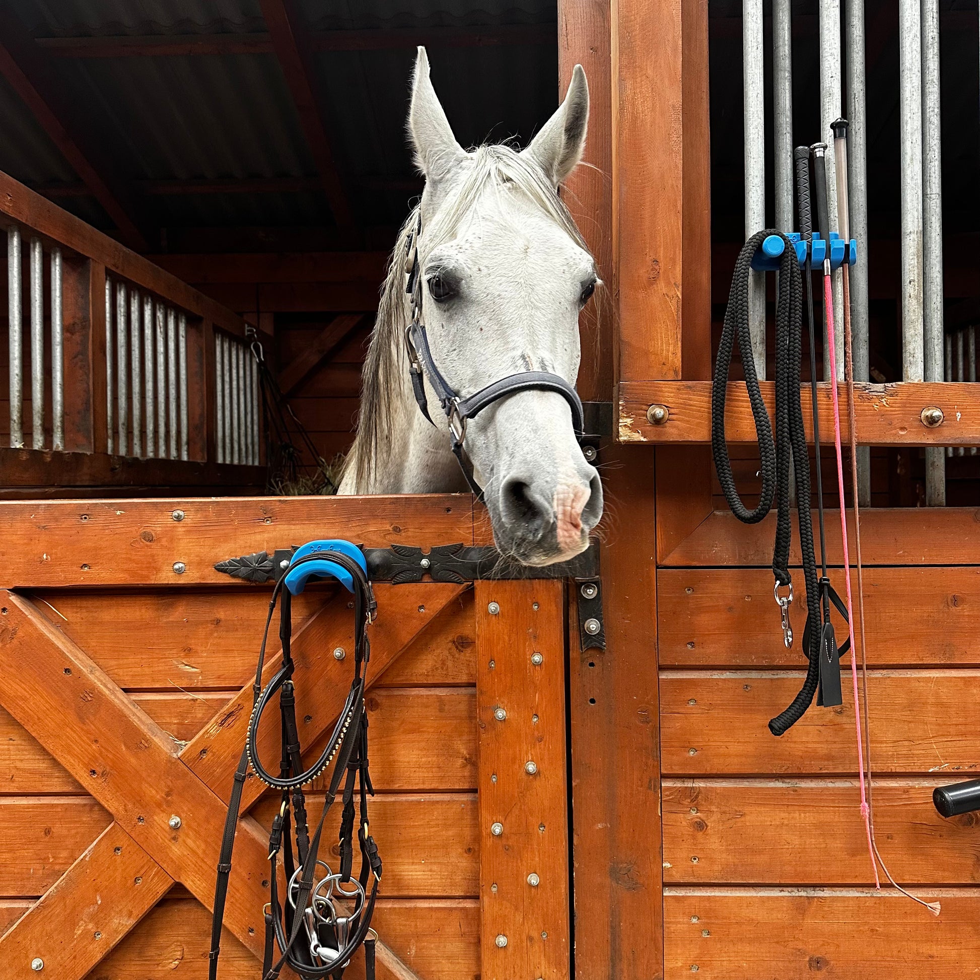 The magnets we use have a load capacity of up to 6 kg, depending on the contact surface. You'll be able to easily hang equestrian accessories such as bridles, halters, lead ropes, lunge lines, buckets, bowls, bags, and more.